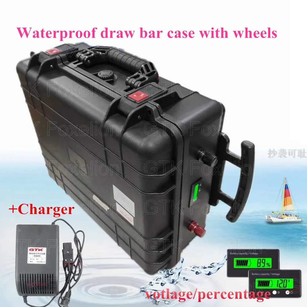 Drawbar case 72v 50Ah li-ion battery pack waterproof for mobile power storage energy RV EV 3kw 5kw motor bike portable power station + 10A speed charger