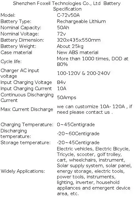 | Model Number | 72v 50Ah |