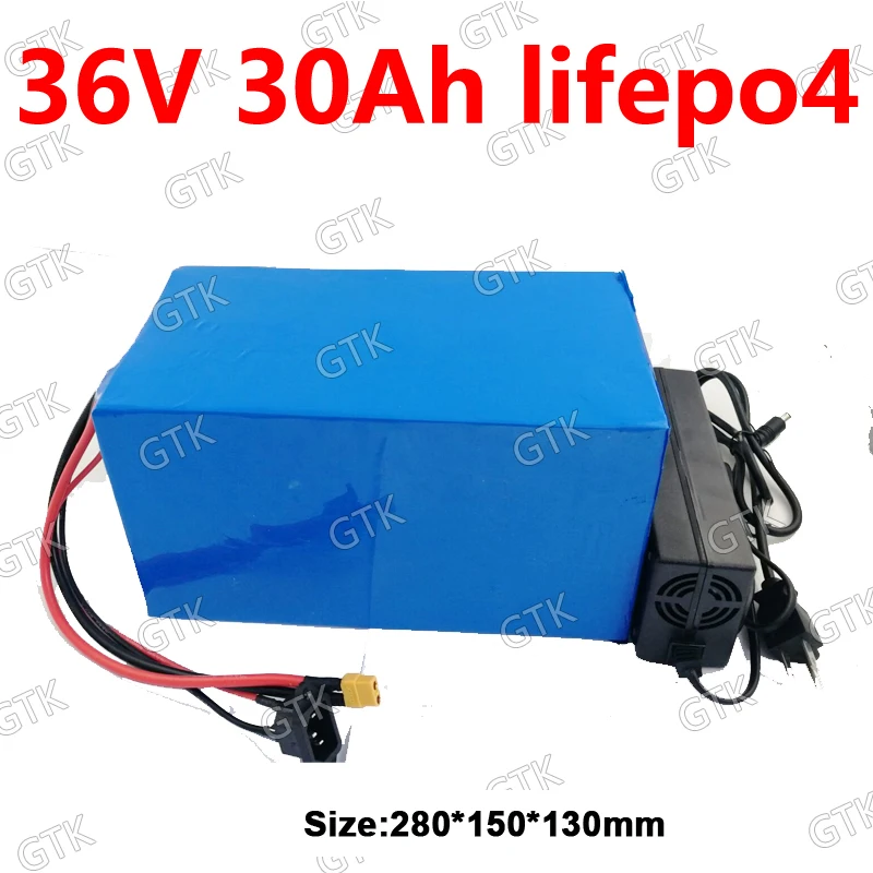 GTK 36v 30ah lifepo4 lithium battery pack 35A BMS 280*150*130mm for 500W 1000W tricycle two-wheeler go cart + 3A charger