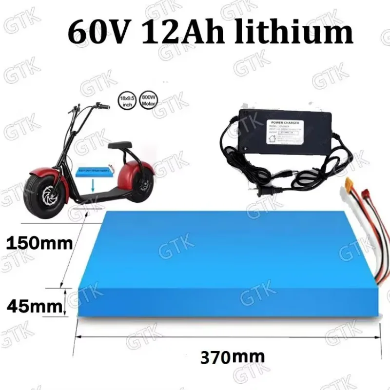 GTK 60V 12Ah Battery pack Lithium-ion for two Wheel Foldable citycoco electric scooter 600w 900w motor Replacement