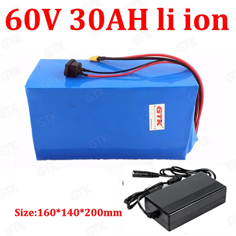 GTK 60v 30ah Li-ion Battery Pack BMS for 60v 3000W Two Wheel Small Vehicle Forklift Golf Cart Power Supply + 5A charger
