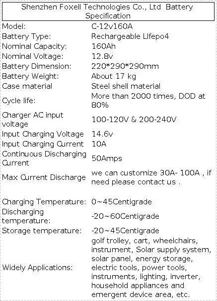 | Model Number | 12v 160Ah |